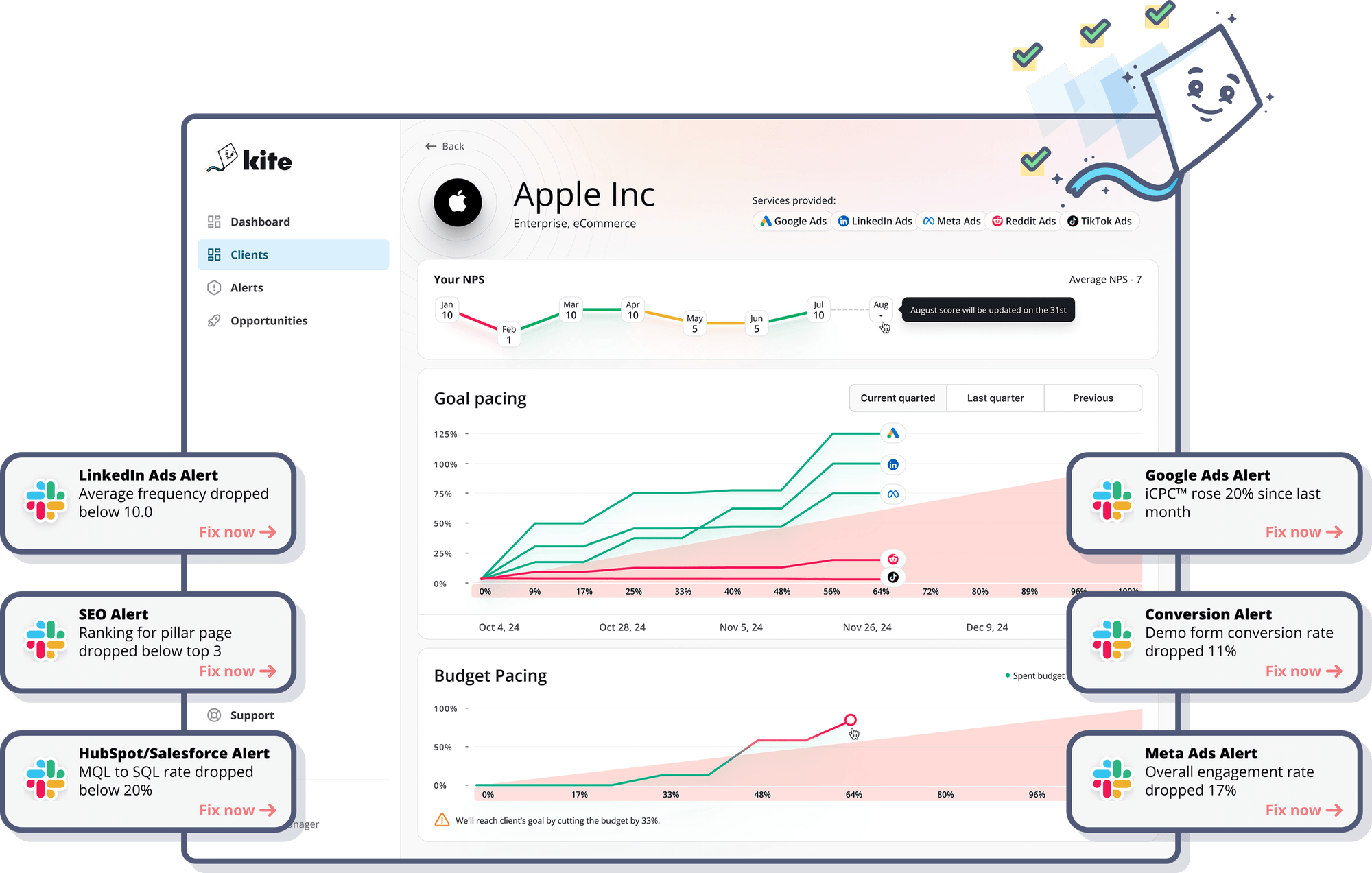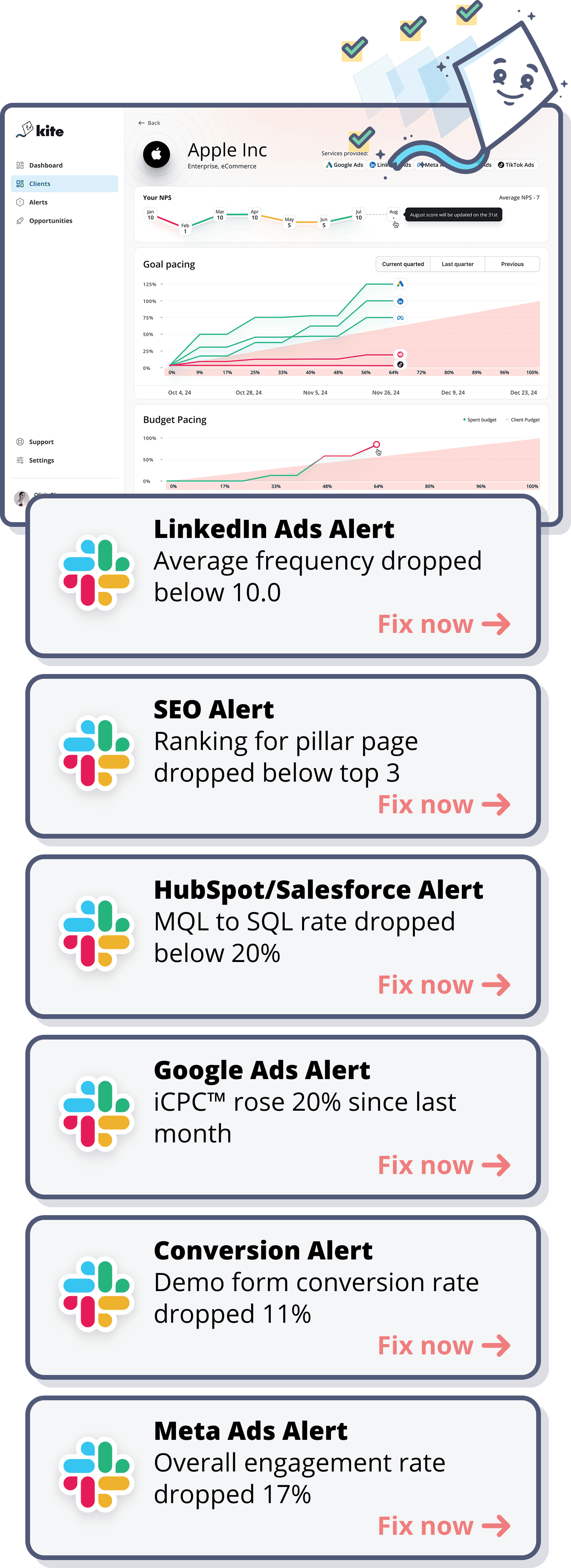 Trained on hundreds of clients & millions of spend, Kite continuously gives you goal-achieving recommendations