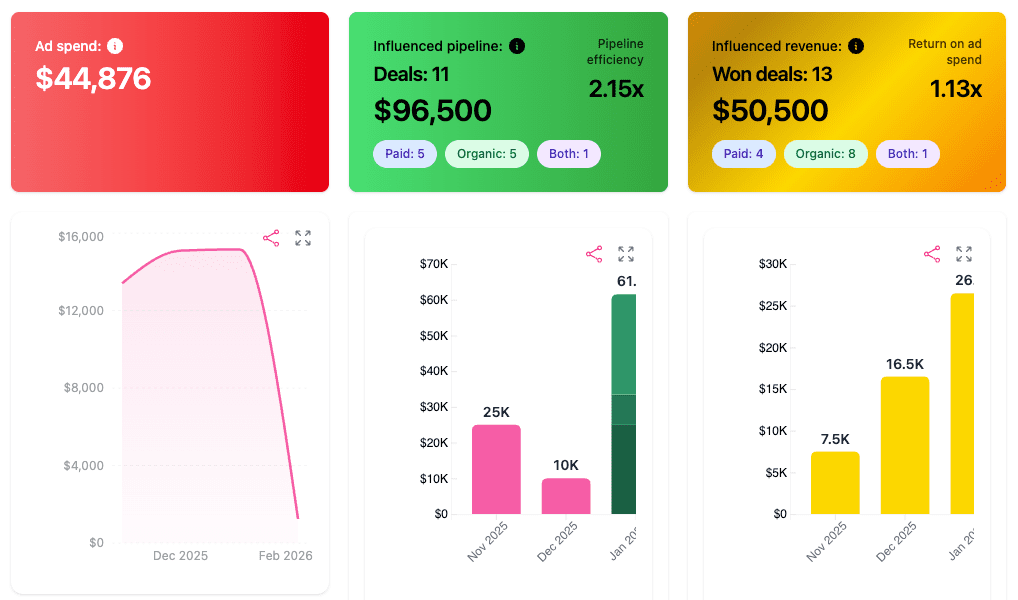 - Correlate ad spend to closed revenue with executive-ready narratives