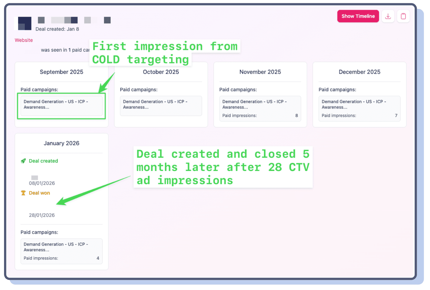 - Tell a compelling story with your buyer’s journeys. Show executives the specific path of high-ACV deals that appeared as "direct traffic" in HubSpot but actually received 4+ months of LinkedIn ad impressions before converting.